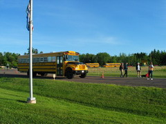 Hier ist die Versorgung noch besser, sofort wird der Chip abgeschnitten, Bananen, Apfelsinen, Erdbeeren, Rosinen, Joghurt, Wasser, Riegel, Bagels, Eiscreme, Kuchen alles was das Herz und der ausgehungerte Läufer begehrt ist da. Wir werden in Alufolien gehüllt und auch Duschzelte sind reichlich vorhanden. Die Sweatbags sind schnell abgeholt, alles ist hervorragend organisiert. Wir treffen die Familie wieder, unsere Kinder bewundern die Medaillen und dann gehen wir zu Old Chicago, wo wir uns eine riesengroße Pizza rein ziehen. Die Schulbusse bringen uns zurück ins Startgebiet und unser Urlaub in Minnesota kann beginnen.