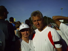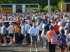 Auf der Messe gab es wieder genau wie in NY eine Menge Proben, Blasenpflaster, Wasserflaschen, Gels, Riegel, Turkey und Ham. Natürlich auch eine große Auswahl an Laufschuhen und Sportbekleidung. Beim Stand vom Runnig Room konnte man an einem Glückrad drehen Sachpreise und Gutscheine gewinnen. Wir haben mehrere Gutscheine gewonnen über 35% und 20% Ermäßigung im Laden oder auf der Messe gültig bis 3.7.05. Natürlich wurden die Gutscheine gleich für neue Laufschuhe verwendet.